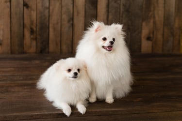 Tout d'abord la race "pom" ou "poméranian", n'existe pas en France. Le terme employé est "Spitz Allemand".